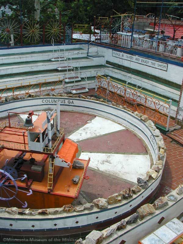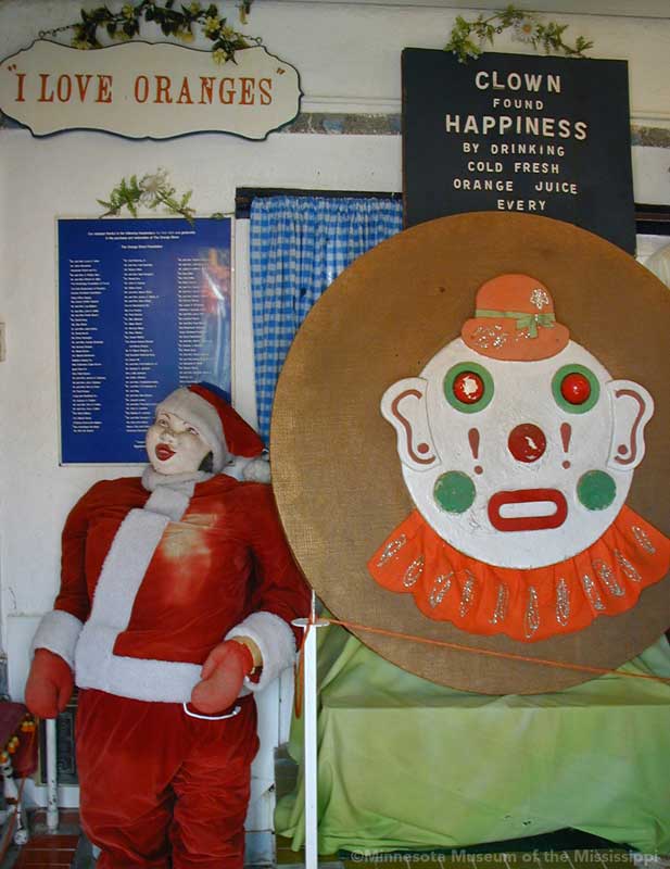 The Orange Show was built by Jeff McKissack as a shrine to his favorite fruit, the orange. While working as a letter carrier he was inspired to bring home materials scavenged along his route and began building in 1956. On the two lots next to his house he worked for 25 years to build displays about oranges, a small theater, stairways, tiled walls and balconies in a sort of labyrinth in bright colors. He opened the site to the public in 1979, but less than a year later died from complications of a stroke.