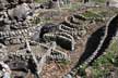 Baggett built stone walls along the driveway leading into the property. An arch topped by an iron wagon wheel is a dramatic entry point. Going up the hillside he built terraced stone walls for garden beds topped with upright stones like teeth. Perhaps he was inspired in his stone construction by Stony Dell Resort, a tourist attraction built in 1932 by stonemason George Prewett just a third of a mile east. The resort centered around a chilly spring-fed swimming pool with decorative rock walls, a waterfall and rugged stone buildings, as well as a restaurant, store and rental cabins along the road. The resort was popular, but after Route 66 was rerouted in 1946 the business closed. The swimming pool was demolished to make way for Interstate 44 in the 1960s, while some of the stone walls of the store and the ruins of the wooden cabins can still be seen on the north side of Highway D.
